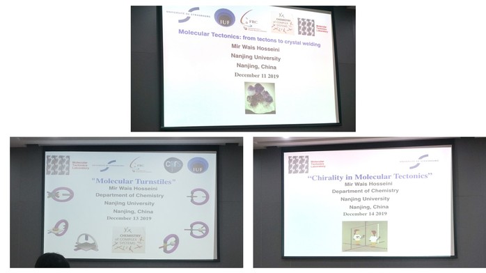 受伟德源自英国始于1946王乐勇教授、强琚莉副教授邀请,法国斯特拉斯堡大学分子构造实验室(Molecular Tectonics Laboratory) 主任Mir Wais Hosseini教授访问bv1946伟德官网,做了分子构造学系列学术报告,并举行了师生学术座谈会。系列报告会分为三场:12月12日下午:分子机器:从建构到晶体“焊接” ( Molecular Tectonics: from tectons to crystal welding);12月13日上午:分子转门(Molecular Turnstiles);12月14日上午:分子构造中的手性(Chirality in Molecular Tectonics)。