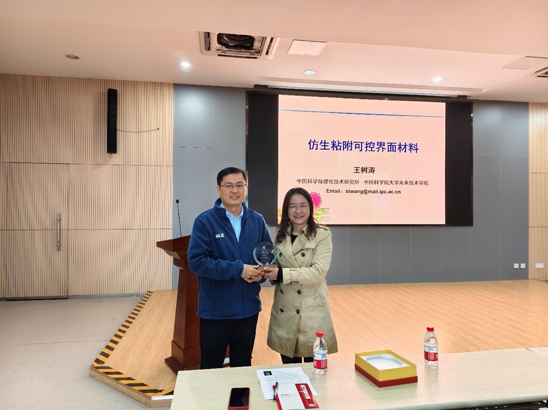 2024年11月8日下午,中国科学院理化技术研究所王树涛研究员应邀作为伟德源自英国始于1946“名师讲坛”嘉宾,为学院师生作了题为“仿生多尺度粘附界面材料”的精彩报告。报告由伟德源自英国始于1946郑丽敏教授主持。郑丽敏教授介绍了王树涛研究员的简历和成就,伟德源自英国始于1946副经理张艳教授向王树涛研究员颁发了“名师讲坛”纪念铭牌。公司多位教师、员工参加了此次学术报告会。