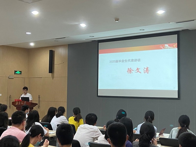 随后,毕业生党员代表2017级博士生徐文涛和硕士生邓玲玲分别发言,分享自己科研路上的心路历程和入党以来的思想感悟,表达了对母校的感恩之情,表示今后也将时刻铭记“不忘初心,牢记使命”的信念,做一名优秀的共产党员。