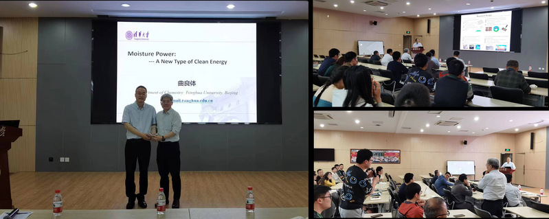 2023年5月12日下午两点,应公司胡征教授邀请,清华大学化学系曲良体教授作为“名师讲坛”的嘉宾,在H201为公司师生作了题为“自发湿气发电效应”的精彩学术报告,报告由胡征教授主持。在报告开始之前,胡征教授介绍了曲良体教授的简历和学术成就,并代表学院向曲良体教授颁发了“名师讲坛”纪念铭牌。公司多个学科的老师及员工共近百人参加了报告会。