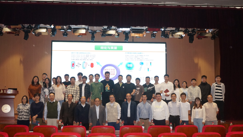 刘育教授首先对受邀公司“名师讲堂”分享自己的科研成果表示感谢,然后介绍了近几年来他在超分子自组装领域的研究成果,并分享了他对超分子自组装材料的理解和研究心得。超分子自组装是超分子化学中重要的研究内容,刘育教授重点分享了多层级组装中超分子基元的构筑、光控超分子组装与功能、大环限域纯有机室温磷光及超分子自组装材料在生物领域的应用,并向我们展望了该领域未来的发展趋势。在讨论环节,师生们踊跃提问,就超分子自组装领域的多个问题进行了热烈的交流与讨论。