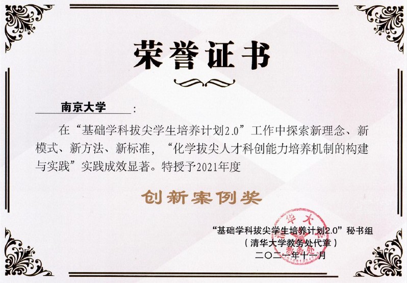 创新案例“化学拔尖人才科创能力培养机制的构建与实践”简介: