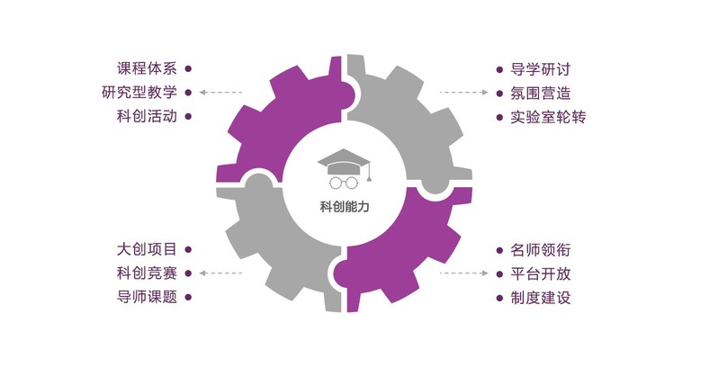 公司在拔尖人才培养过程中提出了“科研创新能力培养贯穿人才培养全过程”的理念。以“志趣为导向、个性化培养、追求卓越”为核心,构建了“课程体系-研究型教学-科创活动”相互支撑、“导学研讨-氛围营造-实验室轮转”相互协同、“大创项目-科创竞赛-导师课题”相互衔接和“名师领衔-平台开放-制度建设”全面保障的“复合三位一体”科创能力系统性培养机制。