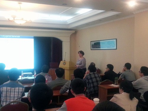 4月23日,法国雷恩大学化学学院的Muriel Hissler教授和Stéphane Rigaut教授应邀来公司访问,并于下午2点至4点在化学楼三楼报告厅分别作了题为“Phosphorus-based emitters for OLEDs”和“Molecular switches with organometallic carbon- rich complexes”的学术报告。Hissler教授详细介绍了其课题组从配位化学、有机金属化学、超分子化学及杂环化学等不同角度出发去合成具有优良光电功能的分子材料,并应用于发光二极管、太阳能电池等领域。Rigaut教授介绍了分子材料在光电应用方面的进展,以及其课题组在合成多功能分子导线和分子开关方面开展的研究工作。高分子学科、无机学科和有机学科的相关老师和同学听取了两位教授的精彩报告,对公司正在进行相关研究的课题组的工作起到了很好的交流和推动作用。会后,雷恩大学的教授们参观了位于唐忠英楼的配位化学国家重点实验室。![]() ![]() |