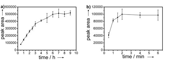 ![]() 图3.反应速度比较:液相标记(a),固相标记(b)