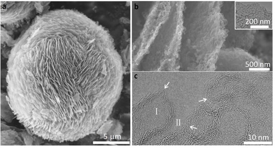 图1. 介观结构碳基纳米笼在不同尺度上的电镜照片