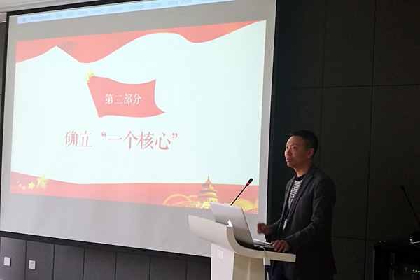陈露洪老师首先传达了十八届六中全会的主要精神:从严治党,使全党能够接受“四大考验”、克服“四大危险”,带领全国人民完成实现“两个一百年”的奋斗目标。其次,陈老师从“会议主题及议程”、“确立‘一个核心’”、“加强和规范党内政治生活”、“加强党内监督条例”、“‘四个全面’的整体设计”、“会议给领导干部画出的红线”六个方面对十八届六中全会的基本内容进行了全面解读。他要求,在场全体党员都应该认真学习《关于新形势下党内政治生活的若干准则》及《中国共产党党内监督条例》两大重要文件,全面领会《准则》和《条例》的重要精神和相关要求,强化“四个意识”,在思想上、行动上坚定不移地拥护以习近平总书记为核心的党中央。 最后,陈露洪老师结合学校关于“两学一做”学习教育的工作部署向在场党员同学强调,作为基层党员,除了应该认真学习科学知识和投身科研外,还要认真组织参与党组织生活,及时学习党的相关知识,提升自身的政治素养。并要求全体党员在本次学习结束后继续深化对十八届六中全会精神的理解,互相交流心得,做一名合格的优秀共产党员。![]() ![]() |