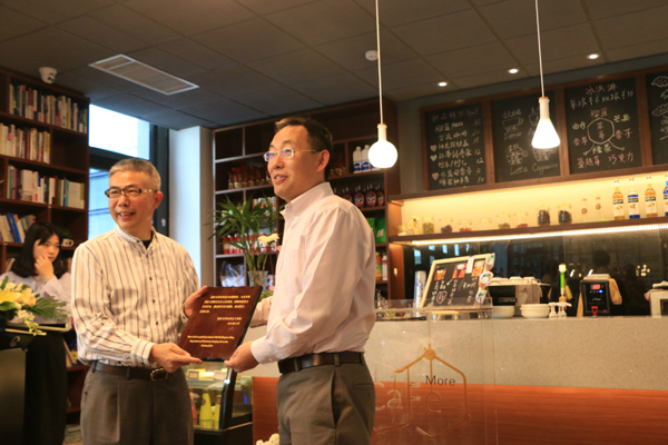 5月25日(本周四)下午2点,化院摩尔花园咖啡屋举行“摩尔花园”捐赠暨启用仪式,大众书局、南大员工会、南大化院约30名领导老师和同学们见证了此次揭牌。南大化院1984级员工、大众书局创始人、鸿国集团(旗下知名品牌千百度女鞋)创始人缪炳文先生,亲自为摩尔花园进行揭牌致辞。