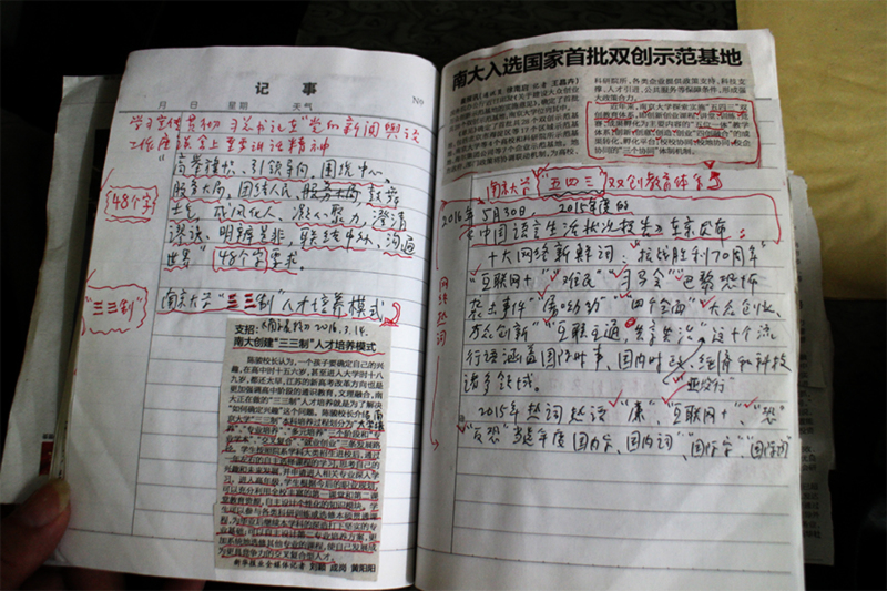 ![]() 陈老师厚厚一叠的政治学习笔记本
