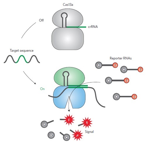 该文回顾了应用CRISPR开展核酸检测和诊断的历史,并特别对CRISPR领域领军人物之一MIT张锋教授发展的SHERLOCK技术 (文见:Science 2017, DOI: 10.1126/science. aam9321) 进行了点评。这种技术是利用新发现的CRISPR/Cas13a发展而来,具有单分子水平检测RNA的能力,并依据神探福尔摩斯(Sherlock Holmes)来命名。这一技术为基于CRISPR的分子诊断提供了新的有力工具。Cas13a是一种独特的核酸内切酶,在识别靶标RNA后会激活其酶活性,对周围的RNA分子产生持续而强烈的随机切割作用,从而可以极大地放大信号。这一过程类似中子轰击铀-235原子核后产生的核裂变,其释放的巨大能量有两种截然不同的用途。因而,如何调控和合理使用这一酶反应过程,避免“双刃剑”的负面效应已成为这一领域的关键性问题。文章还对CRISPR诊断技术在传染病检测、肿瘤诊断等方面的应用以及如何实现细胞内和活体CRISPR诊疗等未来发展方向进行了评述与展望。