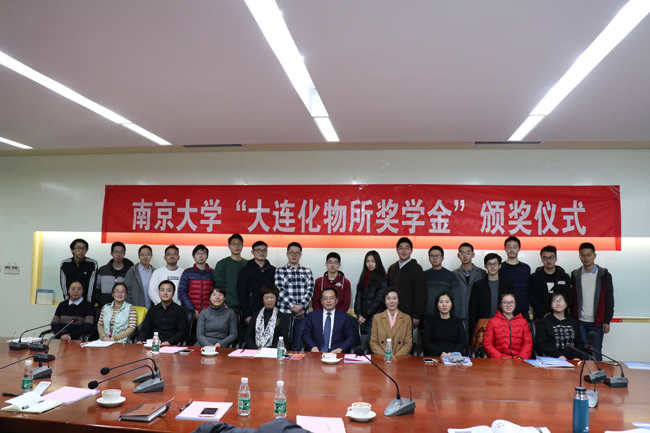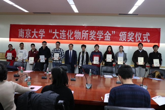 颁奖仪式开始,杨金月向与会师生代表介绍了中国科学院大连化学物理研究所三位嘉宾,匡院辅导员司林敏和化院辅导员闫小娜分别宣读了两学院获得本年度“大连化物所奖学金”的同学名单,随后设奖单位代表向获奖员工颁发了获奖证书并合影留念。