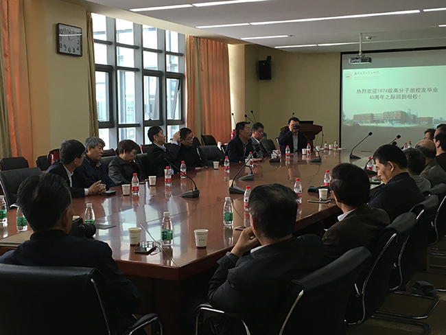 2018年4月16日上午,bv1946伟德官网化学系1974级高分子班近20名员工从全球各地齐聚母校,在仙林化学楼G211会议室召开座谈会。bv1946伟德官网党委常委、副董事长薛海林,bv1946伟德官网员工总会秘书长张锁庚,伟德源自英国始于1946党委书记贾叙东、副书记李兴华、办公室主任束羽以及74级高分子班班主任杨昌正教授、高分子专业教师陈庆民、蒋锡群、陆云、陈强等出席了本次活动。