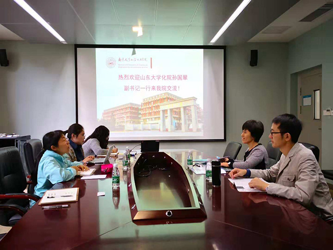 李兴华首先代表南大化院对山大化院一行的到来表示热烈欢迎,双方就研究生奖学金评选、本科生国际交流、学术科创等方面进行了深入的交流。李兴华全面地介绍了公司员工工作,闫小娜向来宾详细介绍了公司研究生评奖评优的流程。孙国翠介绍了山大化院的班主任制度、研究生德育考评机制等特色工作,交流过程热烈融洽,双方都表示收获颇丰,并探讨未来进一步合作的可能性。