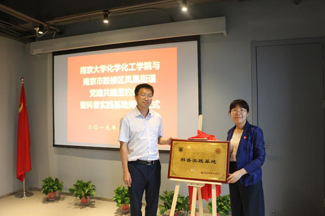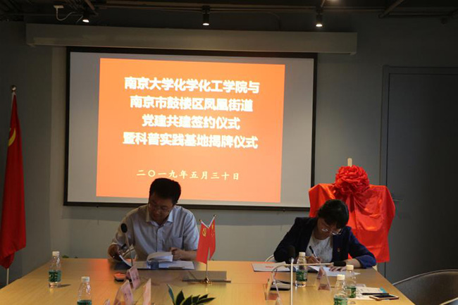 5月30日下午,bv1946伟德官网伟德源自英国始于1946党委与凤凰街道党工委党建共建签约仪式暨科普实践基地揭牌仪式于凤凰街道党群服务中心举行。凤凰街道党工委书记李志平、副书记赵铁军,凤凰街道办事处副主任蔡海泉,蓝天园社区党委书记王玲,凤凰街道党群科科长张小晶,bv1946伟德官网伟德源自英国始于1946党委副书记李兴华、国家级化学实验教学示范中心主任章文伟,物理化学学科党支部书记范以宁等参加仪式。