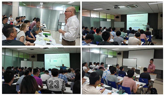 ![]() 暑期学校的四门课程分别是Bio-Organic Mechanisms、Introduction to Chemical Biology、Instrumental analysis: Fundamentals and biological /biomedical applications、Polymer Chemistry –Physics Properties。通过四门课程的学习,同学们学习到了有关生命有机化学、仪器分析和高分子化学的国际前沿知识,并纷纷表示受益匪浅。同时,四位教授也对参加此次暑期课程的员工在课堂上的表现做出高度评价。