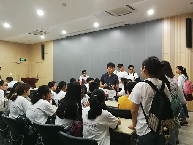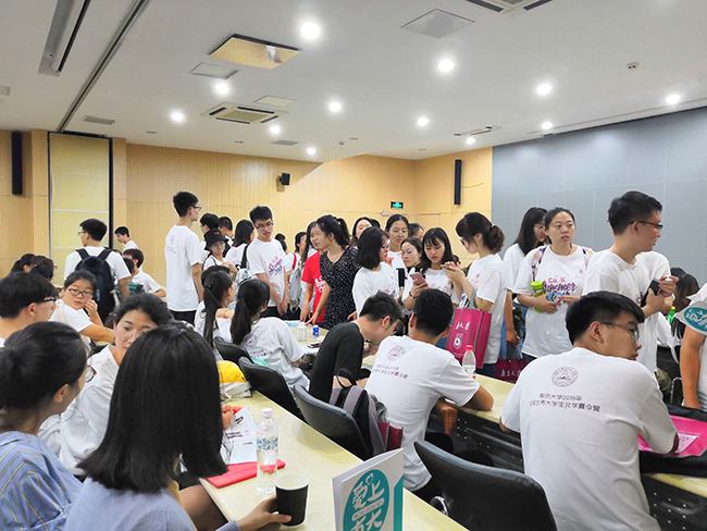 ![]() ![]() ![]() ![]() 16日晚,各学科组织志愿者与来自全国各地的学弟学妹们进行了融洽的沟通,此举旨在增进营员对科研生活和化院课题组情况的了解,帮助他们更好地进行未来科研道路的选择。在整个夏令营期间,公司各课题组也通过组织研究生志愿者宣传和导师进行墙报展讲等方式为广大营员深入了解各个课题组的具体科研方向提供了很多便利,公司教师对科学研究的热情和对优秀人才的渴求给营员们留下了深刻的印象。